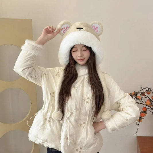 Winter Warm Hat Thickened Bear Ear Embroidery Windproof Ear Protection Cap